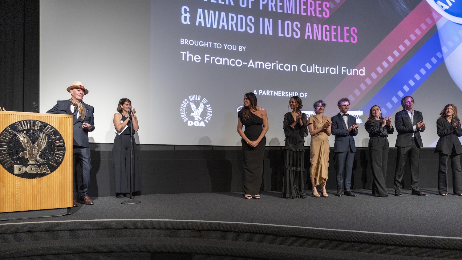 DGA and FACF Member Taylor Hackford,Actresses Karla Sofía Gascón & Zoe Saldaña,Composers and Song Writers& Costume Designer Virginie Montel-Camille- & Clément DucolWriter/Director Jacques Audiard,