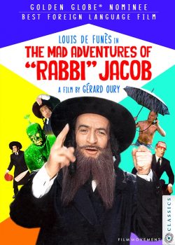 In this riot of frantic disguises and mistaken identities, Victor Pivert, a blustering, bigoted French factory owner, finds himself taken hostage by Slimane, an Arab rebel leader. The two dress up as rabbis as they try to elude not only assassins from Slimane’s country, but also the police, who think Pivert is a murderer. Pivert ends up posing as Rabbi Jacob, a beloved figure who’s returned to France for his first visit after 30 years in the United States. Adding to the confusion are Pivert’s dentist-wife, who thinks her husband is leaving her for another woman, their daughter, who’s about to get married, and a Parisian neighborhood filled with people eager to celebrate the return of Rabbi Jacob.